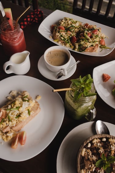 AFter our morning yoga we can fill our reserves with an abundant breakfast/brunch buffet at the hotel restaurant. You will be able to taste local specialties such as sambol (grated coconut with spices), roti and dhosa, or Sri Lankan omelette; as well as a variety of Western breakfast options. These includes various egg dishes, smoothie bowls, fruits and granolas, sweet and savoury breads and toppings (think avocado, grilled vegetables, jams & nutella, peanut butter, hummus and more), pancakes and more.
